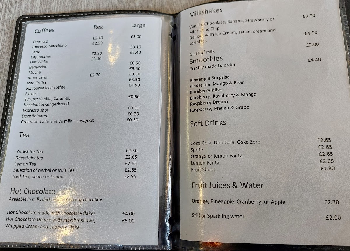 Coffee enthusiasts will appreciate a range of beverages, from the bold Espresso starting at £2.40 to the indulgent Mocha for £3.30. Diners rave about the hearty English Breakfast, echoing a comforting homemade experience. Notably, customers highlight the impeccable service and relaxing outdoor seating that enhances your visit.