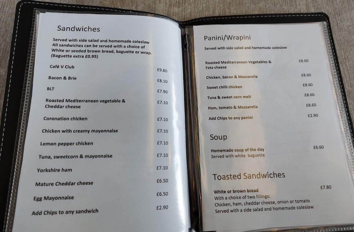 Welcome to Cafe V, a charming café located at 1 Sow Hl Rd, Beverley, UK, where fresh, quality ingredients meet a warm, inviting atmosphere. With expertly crafted dishes, the menu features delightful options, including a Homemade Soup of the Day for £6.60, alongside a children’s menu featuring favorites like cheese sandwiches and fish fingers for just £4.50.